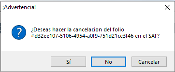 La pantalla te preguntará si deseas hacer la cancelación como se muestra a continuación:
