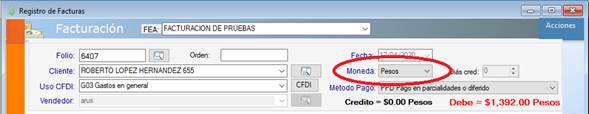 Paso 5. Enseguida corroboramos la Moneda (Pesos o Dólares) con la que se realizará esta operación.